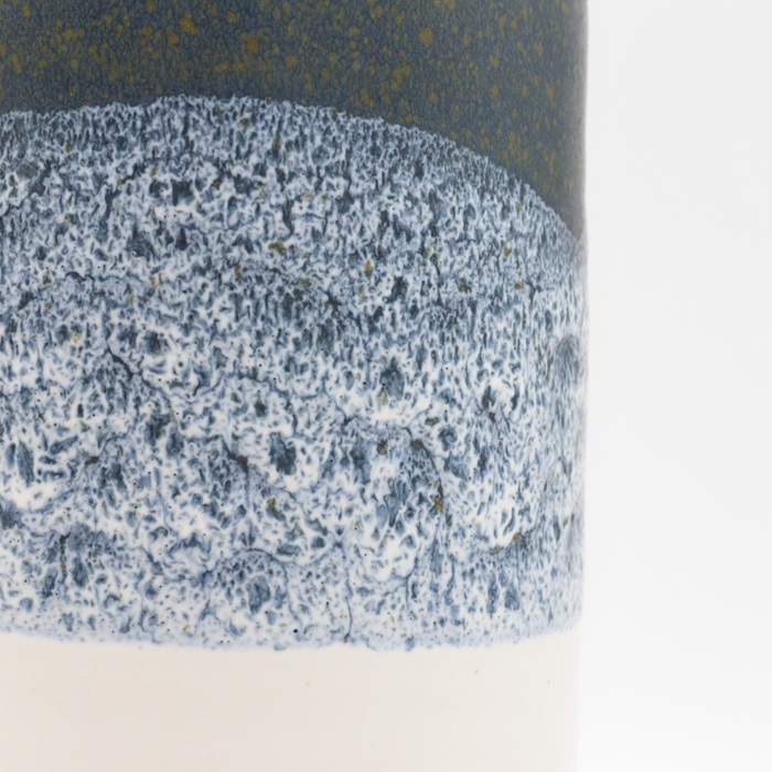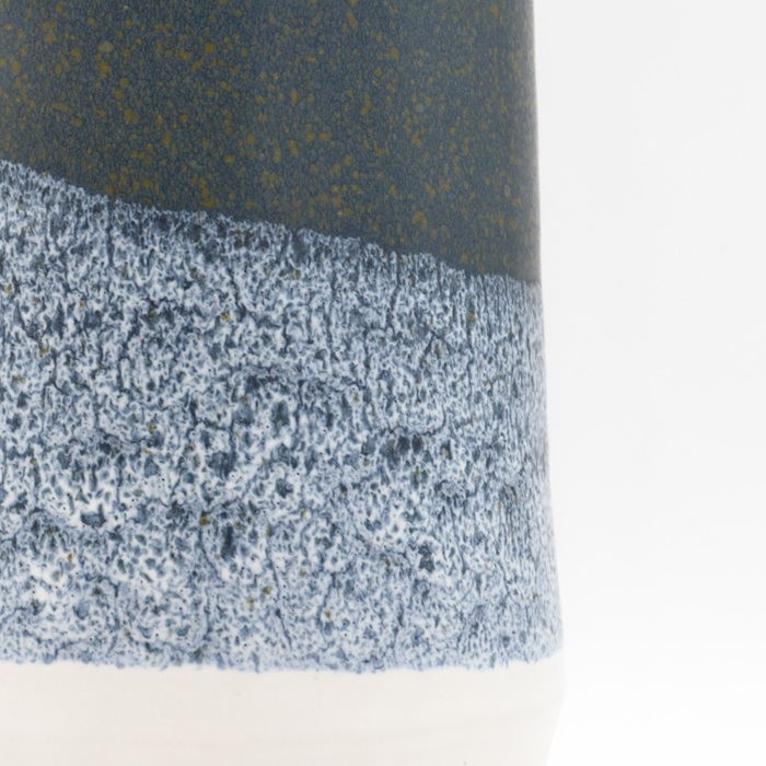 L’émail central, volontairement texturé, varie d’un vase à l’autre : nuances, reliefs et rendus se transforment à chaque cuisson, faisant de chaque pièce une création singulière et authentique.