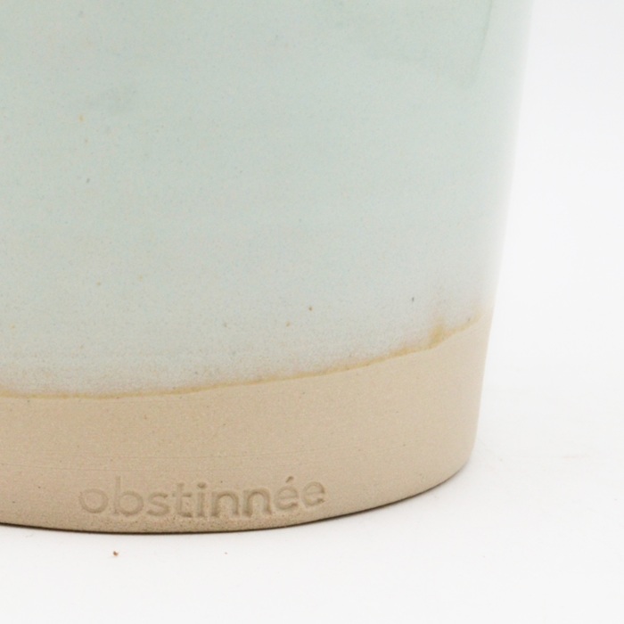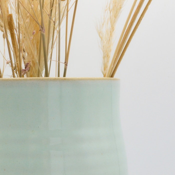 Émaillé à l’intérieur comme à l’extérieur avec un émail vert d’eau, ce vase est parfaitement étanche et peut accueillir aussi bien des fleurs fraîches que des fleurs séchées.